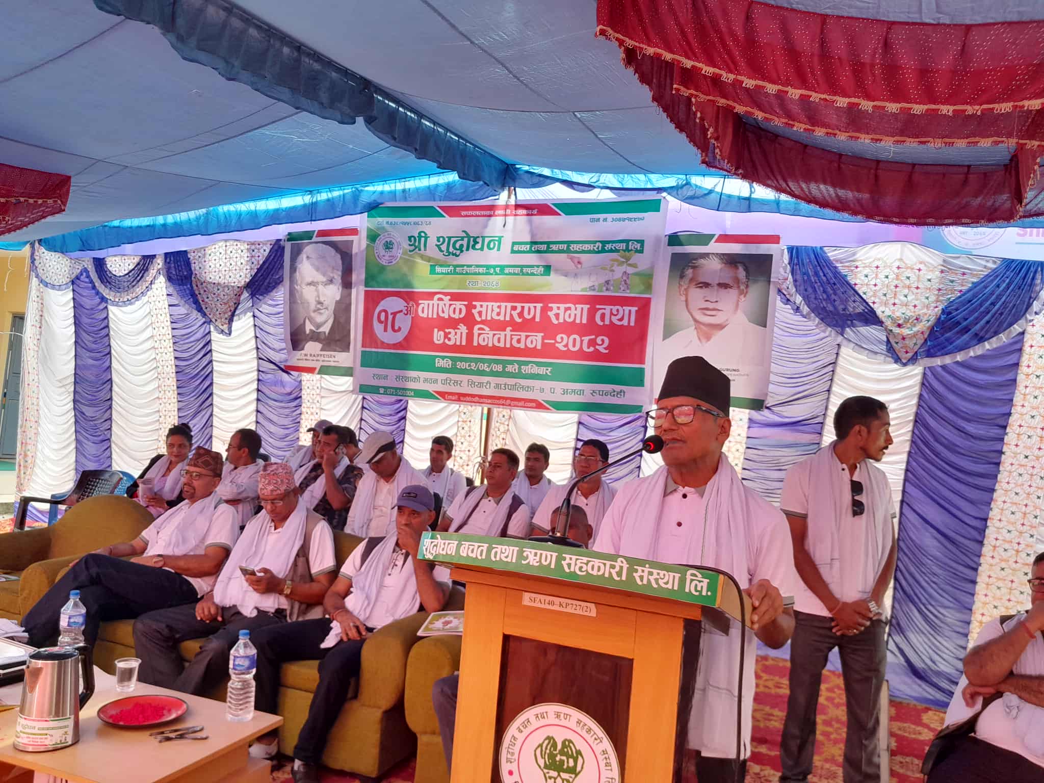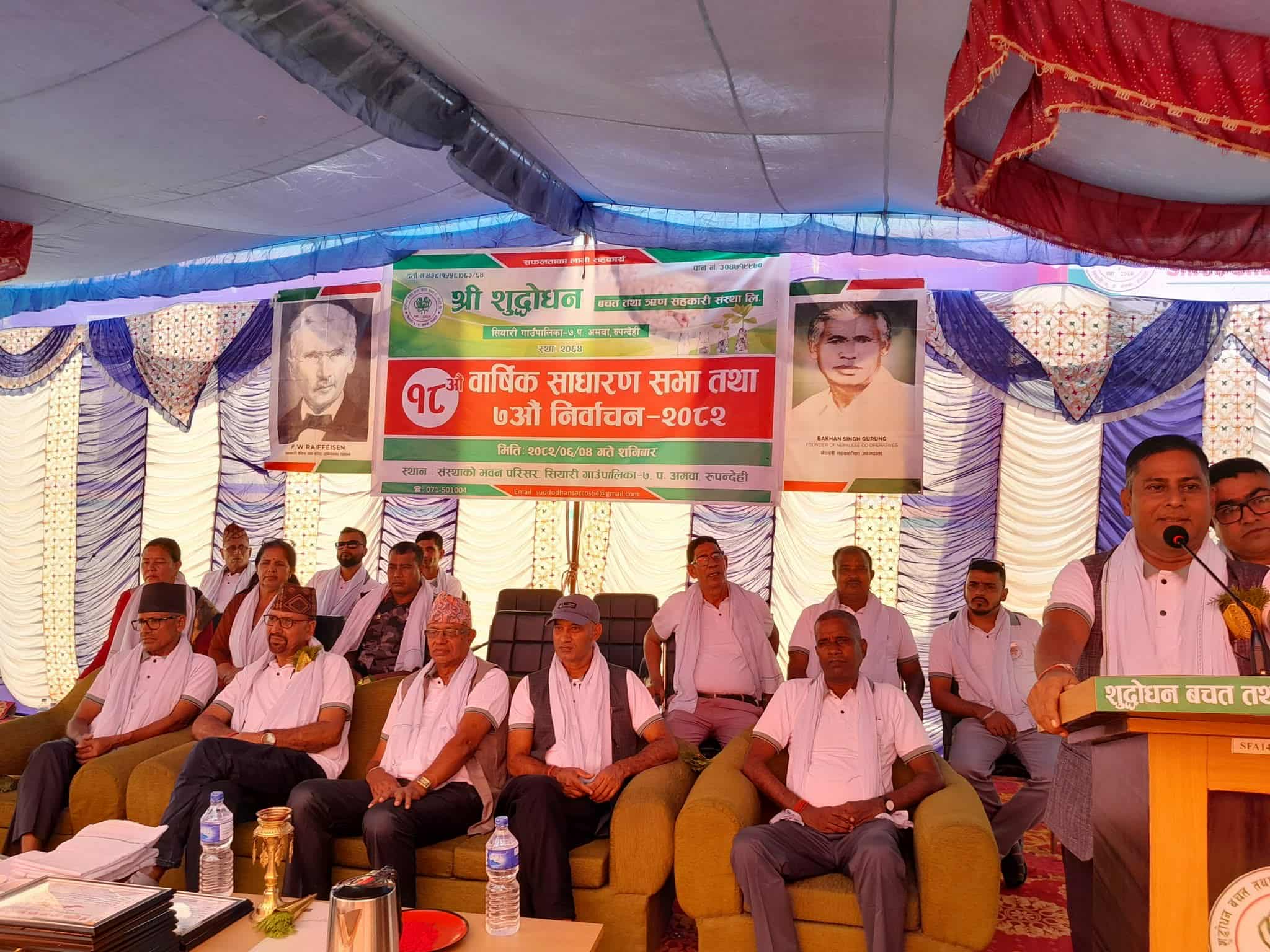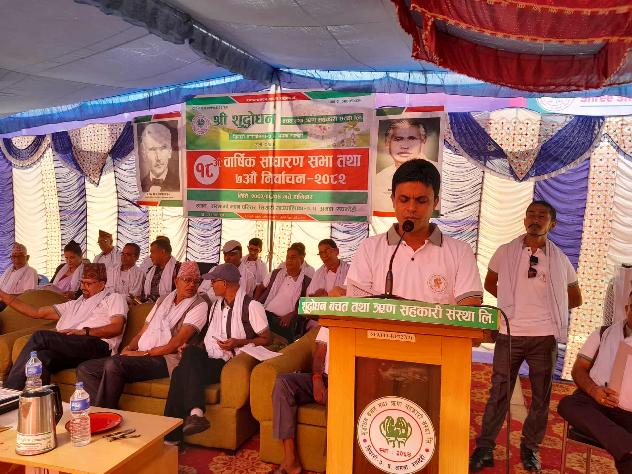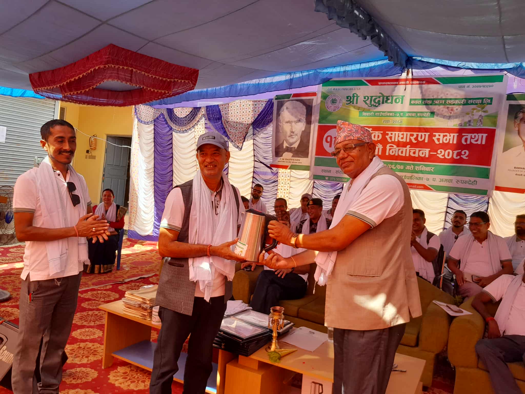 रुपन्देहीको सियारी गाउँपालिका -७ पश्चिम् अमवा स्थित शुद्वोधन बचत तथा ॠण सहकारी संस्थाको अध्यक्षमा सर्वसम्मत रुपमा कृष्ण प्रसाद नेपाल निर्वाचित हुनुभएको छ। शुद्वोधन बचत तथा ॠण सहकारीको हालै सम्पन्न १८ औं बार्षिक साधारण सभा तथा सातौ अधिवेशनले सर्वसम्मत रुपमा सहकारीको अध्यक्षमा नेपाल चयन हुनुभएको हो ।त्यसै गरि सहकारीको उपाध्यक्षमा टंकनारायण आचार्य ,सचीव सुरेन्द्र प्रसाद गुप्ता ,कोषाध्यक्ष ॠषिराम न्यौपाने सर्वसम्मत निर्वाचित हुनुभएको छ ।संस्थाको सदस्यहरुमा देवि सापकोटा ,शिवलाल आचार्य ,दीर्घनारायण भट्टराई ,रिता खत्री र टंकराज देवकोटा सर्वसम्मत चयन भएका छन् ।