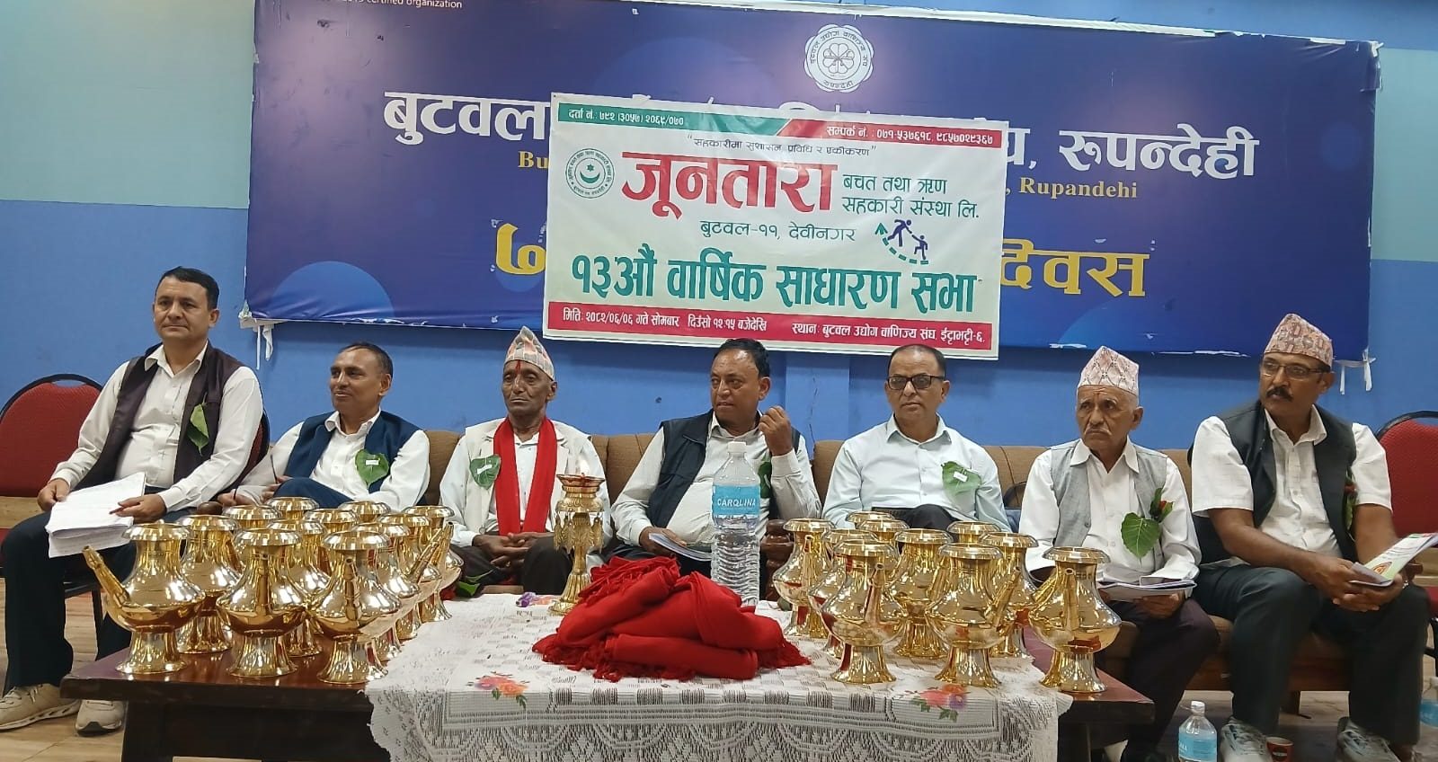 बुटवल । जूनतारा बचत तथा ऋण सहकारी संस्था लिमिटेड बुटवलको १३ औँ वार्षिक साधारणसभा सोमबार सम्पन्न भएको छ । साधारणसभाको संस्थाका ज्येष्ठ सदस्य केशवराज खनालले उद्घाटन गरे । सोही अवसरमा बोल्दै उनले संस्थालाई थप उचाइमा पु¥याउन सबै सदस्यहरु एकजुट भएर अघि बढ्न आग्रह गरे ।