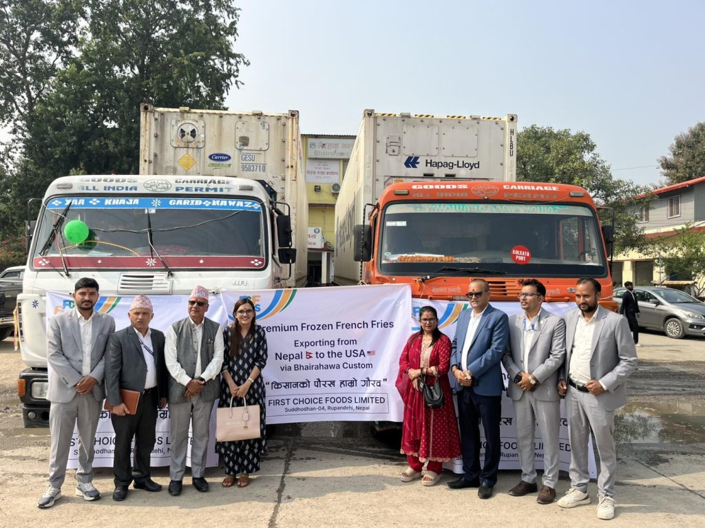 भैरहवा भन्सार कार्यालयबाट केही दिनअघि दुई वटा कन्टेनरमा ४२ मेट्रिक टन फ्रेन्च फ्राइज अमेरिकाका लागि भारतको बाटो हुँदै पठाइएको उद्यमी पौडेलले जानकारी दिए । ‘हिमालयन क्रिस्प’ र ‘हाम्रो फ्राइज’ ब्रान्डमा उत्पादन भएका यी फ्रेन्च फ्राइज अब अमेरिकी बजारमा नेपाली स्वादका रूपमा चिनिने छन् । तर, त्यहाँ पुग्न अझ केही दिन भने लाग्नेछ । अमेरिकाको सम्बन्धित निकायले गुणस्तर परीक्षण गरेपछि निर्यातको अनुमति दिएको हो ।