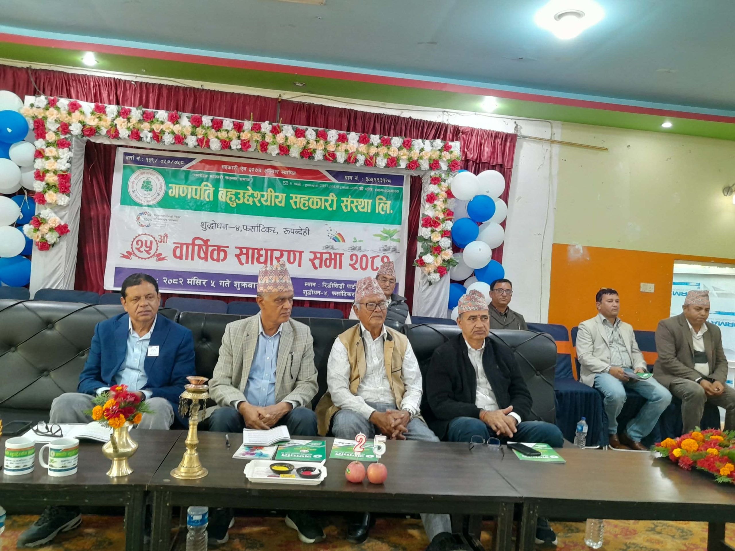 रुपन्देहीको शुद्दोधन गाउँपालिका -४ सौ फर्साटिकर स्थित गणपति बहुउद्देश्यीय सहकारी संस्थाको २५ औं वार्षिक साधारण सभा शुक्रबार सम्पन्न भयो ।