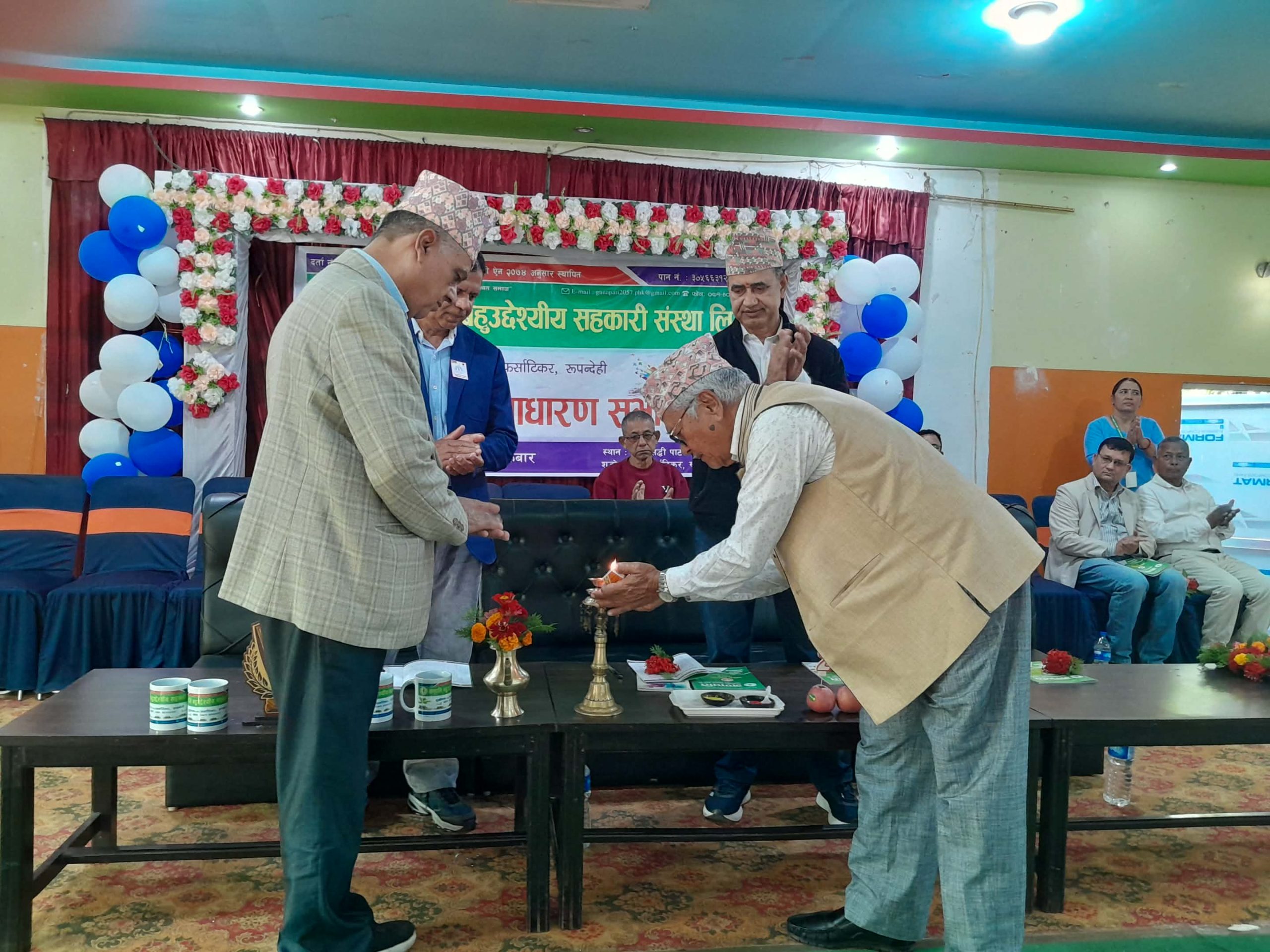 गणपति बहुउद्देश्यीय सहकारी संस्थाका संस्थापक अध्यक्ष डुकबहादुर पौडेलले साधारण सभाको उद्वाटन गर्नुभयो ।