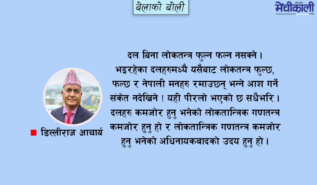 दलहरु कमजोर हुनु भनेको लोकतान्त्रिक गणतन्त्र कमजोर हुनु हो र लोकतान्त्रिक गणतन्त्र कमजोर हुनु भनेको अधिनायकवादको उदय हुनु हो । लोकतन्त्रको विकल्प समुन्नत लोकतन्त्र भन्ने रट्याँई राजनीतिक रटयाइँ जारी छ । ऐले सम्म समुन्नत लोकतन्त्रको फल चाख्न के देख्न पनि पाएका छैनन नेपालीहरुले । लोकतन्त्र असफल भए, अधिनायकवाद, निश्चित छ । कुन मोडेलको र कहिले ? भन्ने मात्र हो ।