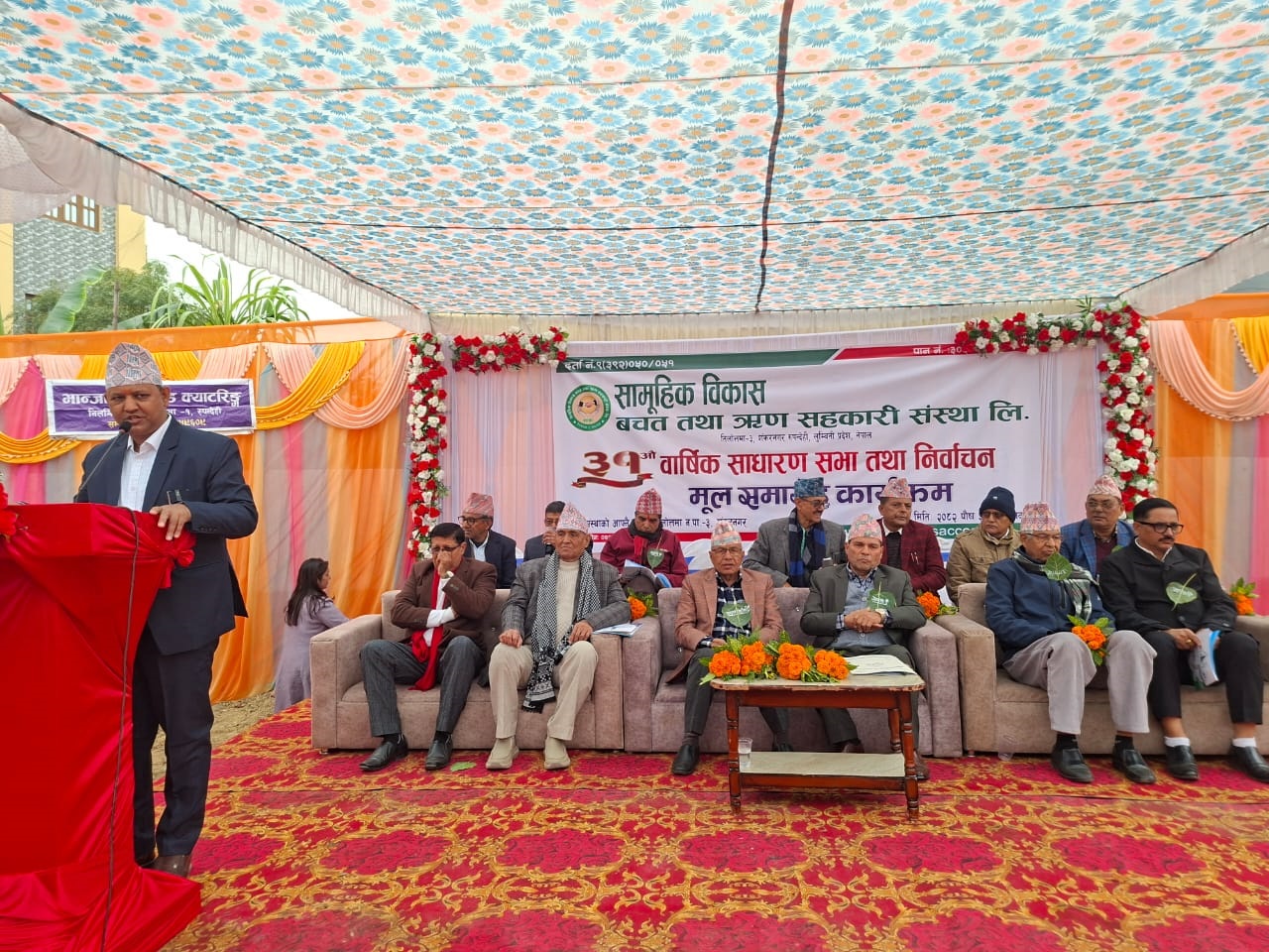 सामूहिक विकास सहकारीको ३१ औँ साधारणसभा शनिबार सम्पन्न भएको छ । साधारणसभामा संस्थाका अध्यक्ष सुरेन्द्रकुमार वर्माले वार्षिक कार्यक्रमसहित प्रतिवेदन प्रस्तुत गर्दै आगामी योजनाहरुबारे जानकारी गराए । अधिकांश कर्जा व्यवसाय र उद्योग क्षेत्रमा लगानी गर्ने गरेको उनले बताए । कृषिजन्य उद्यम, व्यवसायका अतिरिक्त सामाजिक कार्य र शैक्षिक क्षेत्रमा बढी कर्जा लगानी हुने गरेको उनको भनाइ थियो । संस्थालाई थप सुदृढ र व्यवस्थित बनाउनको लागि सबै शेयर सदस्यहरूको हातेमालो आवश्यक रहने उनको भनाइ थियो । समाजमा छरिएर रहेको स–सानो पुँजीलाई संकलन गरी सदस्यहरुबिच विभिन्न वित्तीय पहुँच पु¥याएर स्वरोजगारको अवस्था सिर्जना गर्न विभिन्न कार्यक्रम सञ्चालन गर्ने बताउँदै शेयर सदस्यहरुलाई शुलभ, प्रविधियुक्त, सदस्यमैत्री सेवा प्रदान गर्न संस्था सधैँ लागिरहने कुरालाई उनले जोड दिए ।