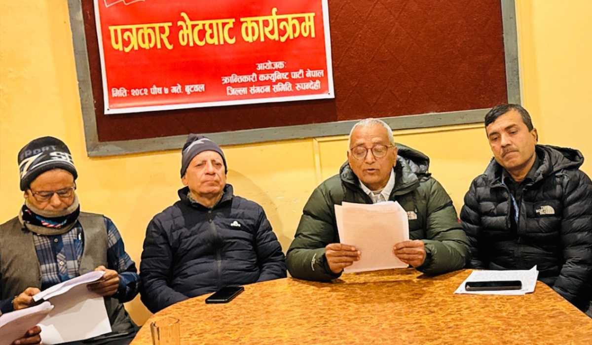 बुटवल । क्रान्तिकारी कम्युनिष्ट पार्टी नेपालका स्थायी समिति सदस्य कृष्ण पौडेलले फागुन २१ मा हुने निर्वाचन बहिष्कार गर्ने बताएका छन् । अहिलेको अवस्थामा हुने निर्वाचनले जनताका चाहाना पूरा गर्न नसक्ने र पुरानै संसद्वादी दलहरु नै हावी हुने भएकाले यो निर्वाचनको कुनै अर्थ नभएकाले बष्किार गरिने बताए । क्रान्तिकारी कम्युनिष्ट पार्टी नेपाल रुपन्देहीले मंगलबार बुटवलमा आयोजना गरेको पत्रकार सम्मेलनमा बोल्दै नेता पौडेलले जेनजी बिद्रोहको नाममा भारतीय विस्तारबाद र अमेरिकी साम्राज्यबादको इसारामा यो सरकार बनेको दावी गरे ।