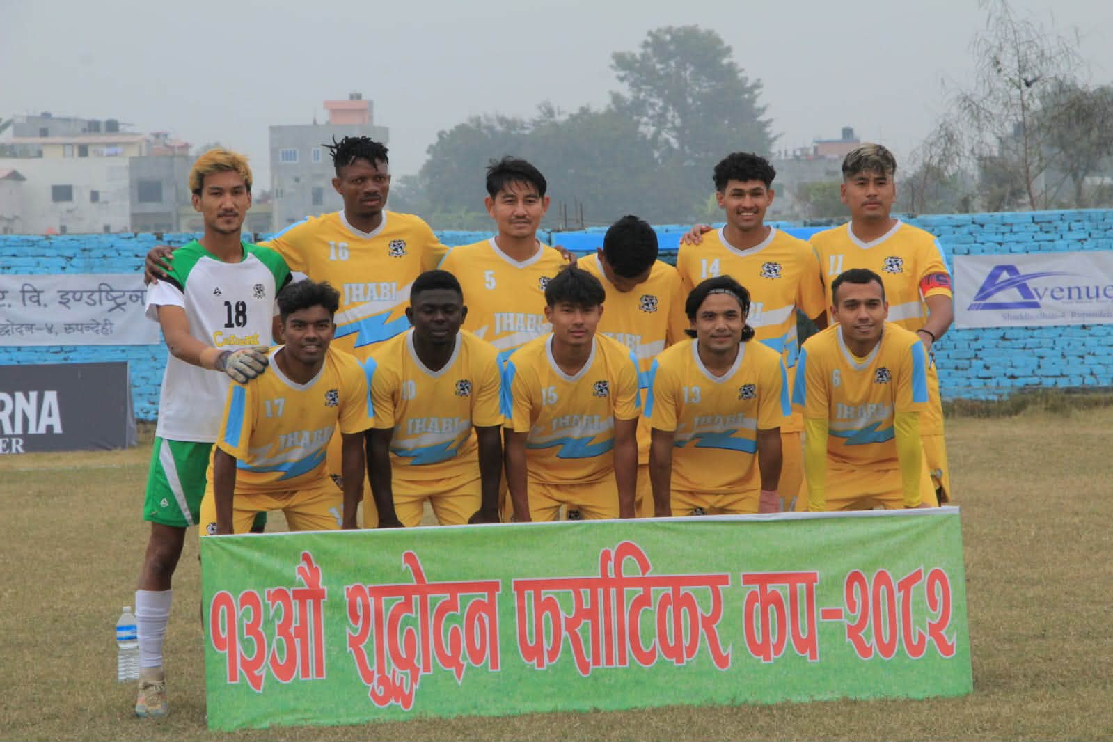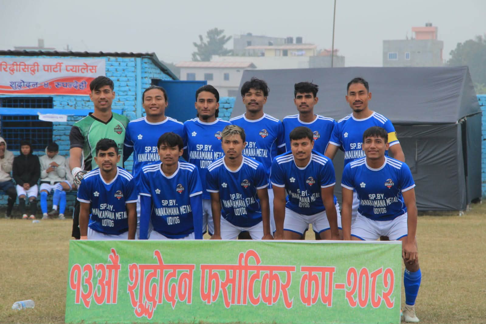 रुपन्देहीको शुद्वोदन गाउँपालिका -४ स्थित फर्साटिकर माध्यमिक विद्यालयको खेलमैदानमा संचालित १३ औं शुद्वोदन गाउँपालिका फर्साटिकर कप प्रतियोगितामा अन्तरगत बुधबार सम्पन्न प्रहिलो सेमिफाइनल खेलमा पेनाल्टीमा कपिलवस्तु -११ कपिलवस्तु बिजयी भएको छ।बुधबार सम्पन्न कपिलवस्तु -११ कपिलवस्तु भर्सेस लिस्नु युवा क्लब बीच भएको प्रतियोगितामा ३ का विरुद्ध ४ गोलको अन्तरले कपिलवस्तु -११ विजयी भएको हो । खेलको निर्धारित समय भित्र कुनै पनि टिमले गोल गर्न नसकेपछि खेल पेनाल्टीमा परिणत भएको थियो ।बुधबार सम्पन्न खेलको म्यान अफ द म्याच कपिलवस्तु -११ का गोल रक्षक खेलाडी प्रतीक सुनार घोषित भए ।