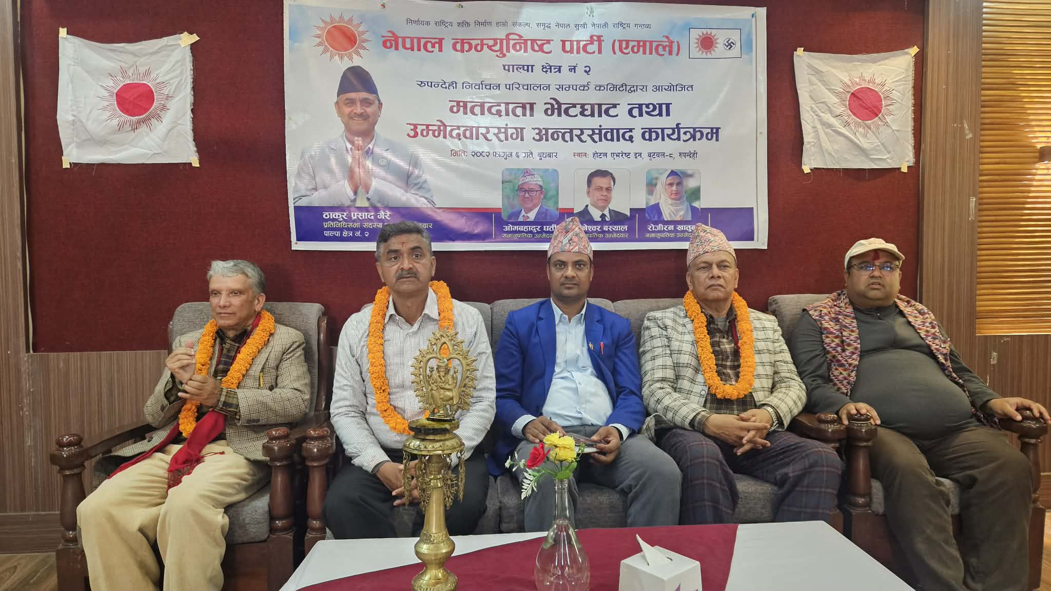 कार्यक्रममा नेकपा एमाले रुपन्देहीका जिल्ला सदस्य तथा युवा नेता बाबुराम बोहोराले जीविकोपार्जनका लागि पाल्पाबाट बुटवल आएर पनि विभिन्न तहबाट पार्टीलाई साथ र सहयोग रहेको भन्दै जन्मभूमि फर्कन चाहने उद्योगी व्यवसायीलाई सिद्धबाबा सुरुङ्गमार्ग निर्माण भएसंगै छोटो दूरीले सहज पुग्ने बताउँदै त्यसका लागि एमालेलाई विजयी बनाउन आग्रह गरे । रुपन्देही निर्वाचन परिचालन सम्पर्क कमिटीका संयोजक रामचन्द्र बस्यालको अध्यक्षतामा भएको कार्यक्रम सहसंयोजक पारसमणि पोखरेलले सञ्चालन गरेका थिए ।