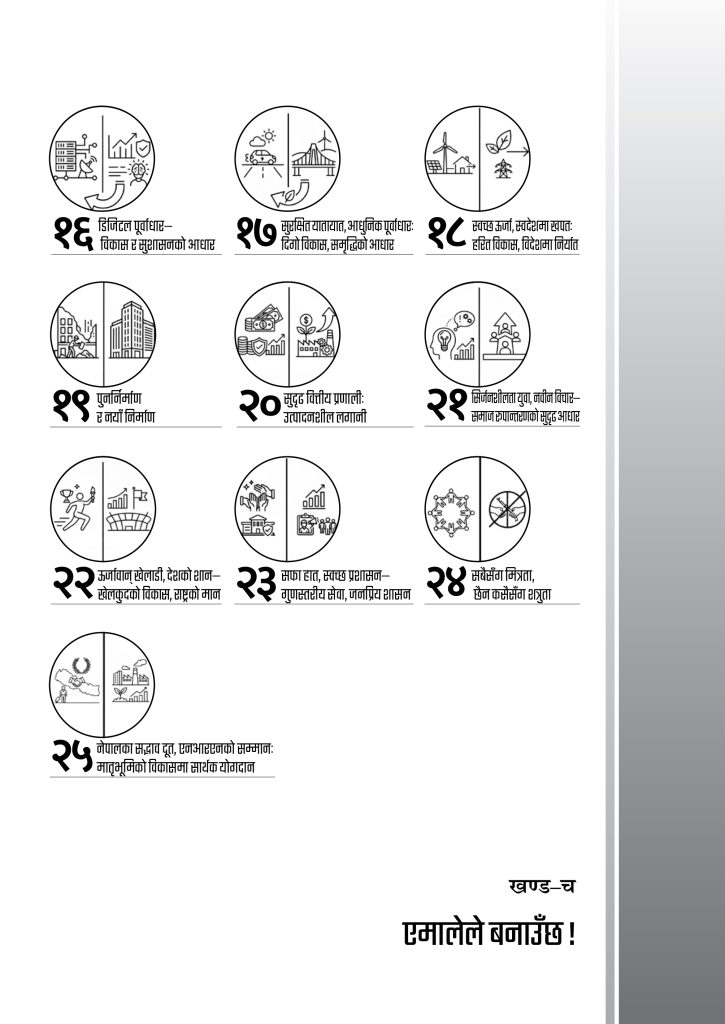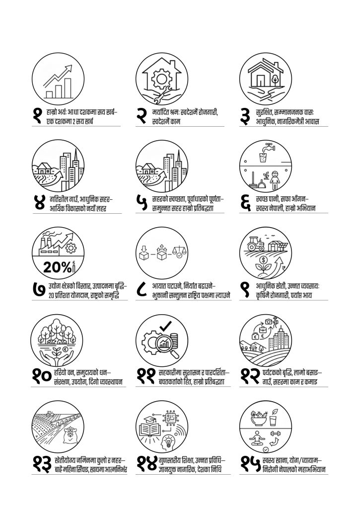 तत्काल गर्ने ११ काम, ५ आधारभूत घोषणा र समृद्धिका २५ स्तम्भ