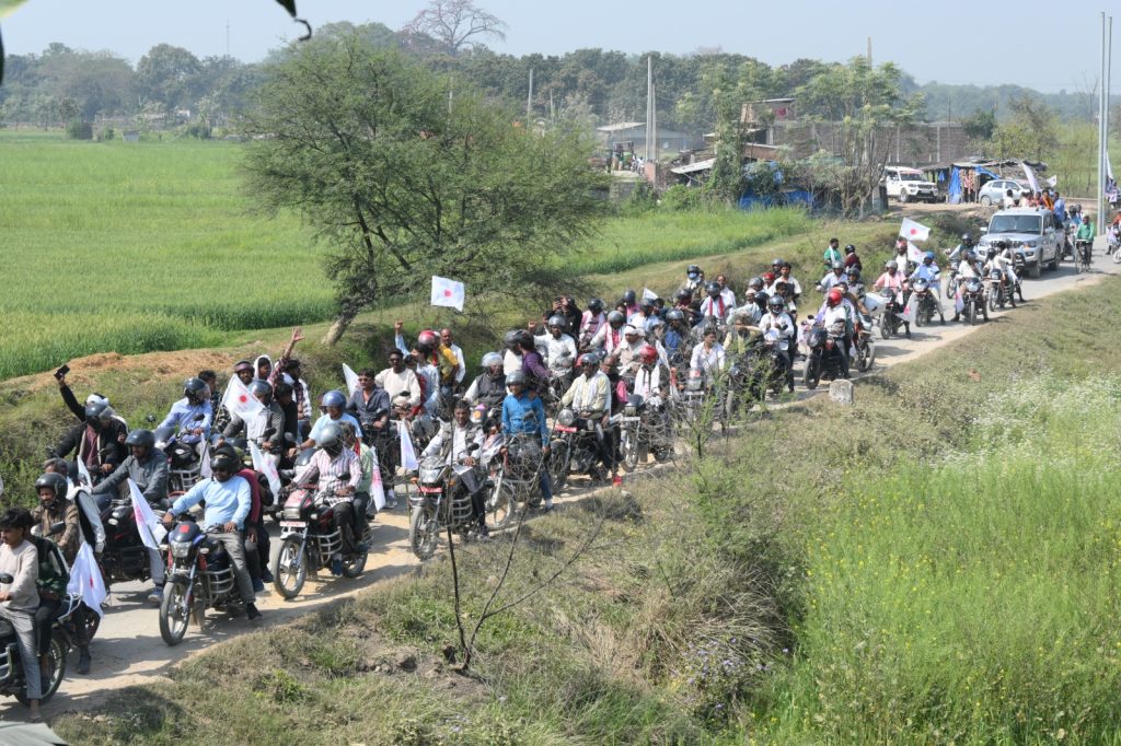 हरिजनलाई पार्टी प्रवेश गराएपछि मायादेविको मकरीदेखि समरीसम्म हजारौँ मोटरसाइकलको सहभागितामा चुुनावी सन्देश ¥याली निकालिएको थियो । उक्त ¥याली मकरीदेखि, तुनिहवा, मझगाव, कोटही मन्दिर, मर्चवारी मन्दिर, बगौली, करौता, थुुमहवा, रोहिनिहवा, असुरऐना, दुुइमुुहान, अमवा, पिप्रहवा हँुुदै करौतासम्म पुुगेको हो ।