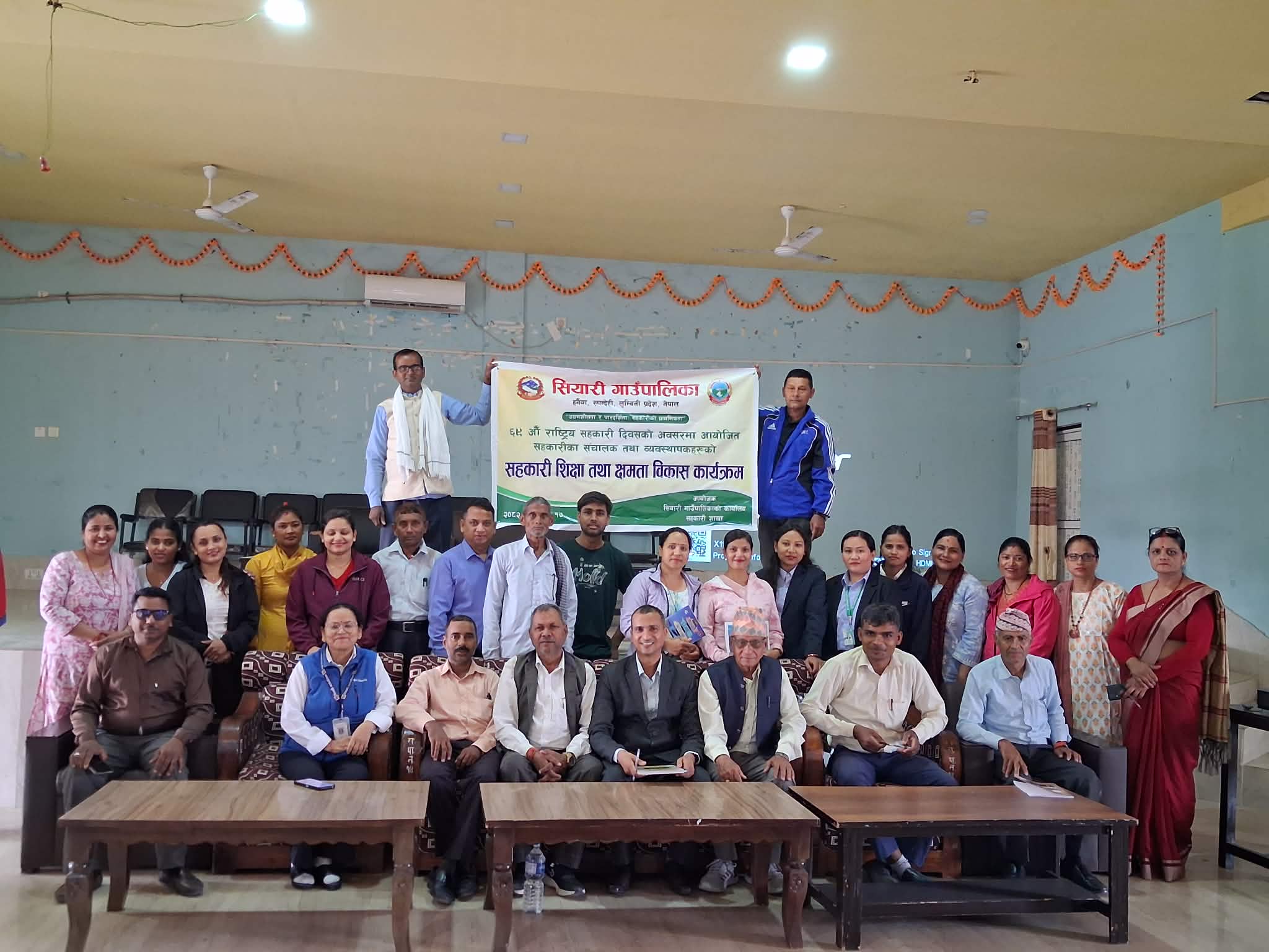 “उद्दमशिलता र पारदर्शिता ;सहकारीको प्राथमिकता भन्ने नाराका साथ ६९ औं रास्टिय सहकारी दिवसको शुभ अवसरमा रुपन्देहीको सियारी गाउँपालिकामा पालिका अन्तर्गतका सहकारी संचालक तथा व्यवस्थापकहरुको सहकारी शिक्षा तथा क्षमता विकास सम्बन्धि २ दिने तालिम गाउँपालिकाको सभा हलमा सम्पन्न भयो ।सियारी गाउँपालिका सियारी सहकारी शाखाको आयोजनामा संचालित उक्त तालिममा ३६ जना सहभागी भएका थिए ।