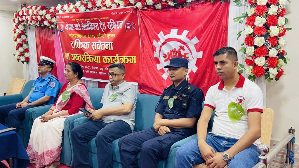 बुटवल । सडक दुर्घटनाबाट हुने अकाल मृत्युबाट नागरिकलाई बचाउन सबैको चासो र सहकार्य आवश्यक रहेको सरोकारवालाहरूले बताएका छन् । नेपाल अटो–मेकानिक्स ट्रेड युनियन (नाटु) मोटरसाइकल इकाइ कमिटी बुटवलले शनिबार आयोजना गरेको ट्राफिक सचेतना तथा अन्तक्र्रिया कार्यक्रममा बोल्ने वक्ताहरूले सडक दुर्घटना न्यूनीकरणका लागि सबै क्षेत्रबाट सकारात्मक पहलकदमी हुनुपर्नेमा जोड दिएका थिए ।