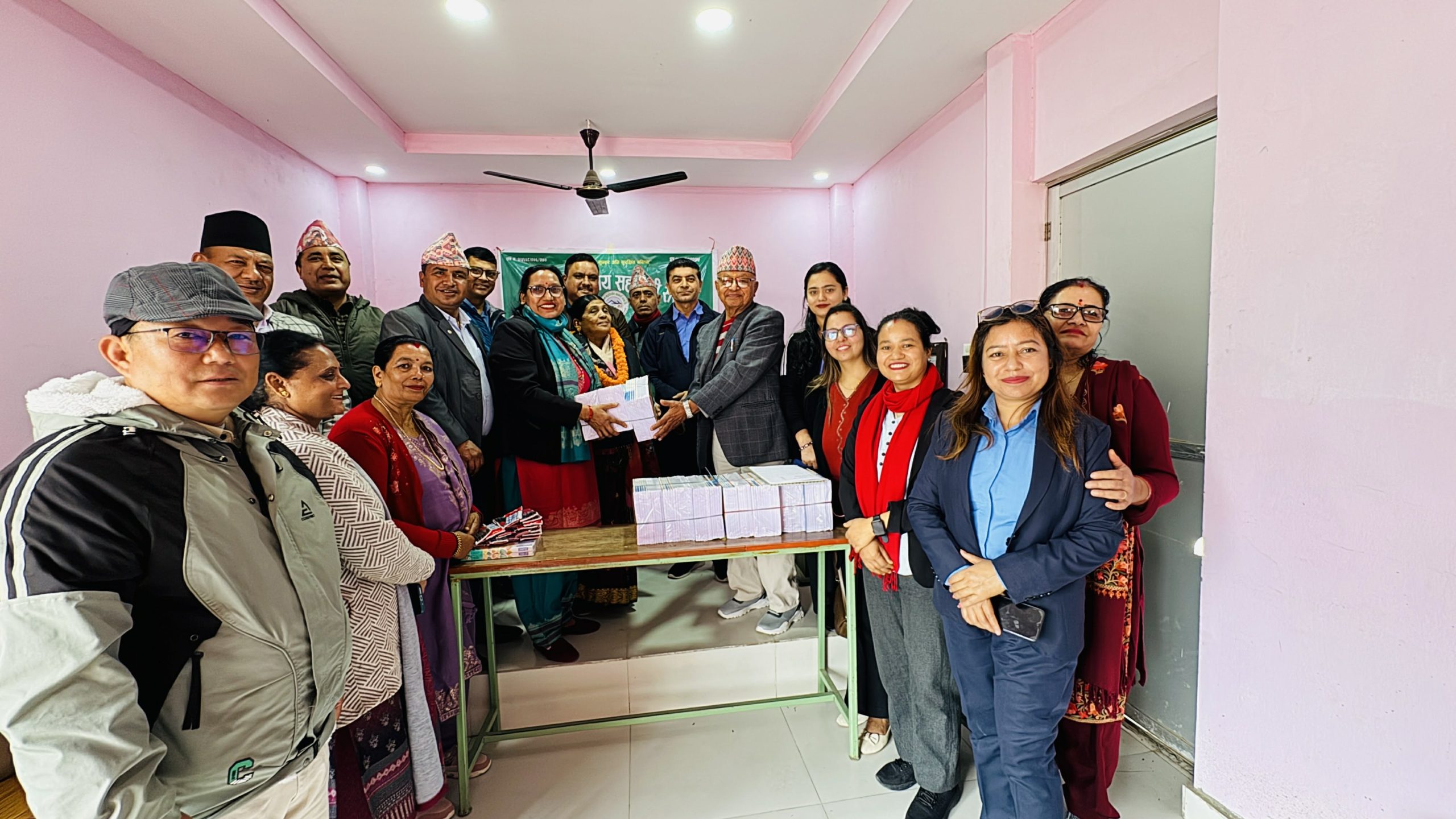 सम्बन्ध सहकारीद्वारा स्थापना दिवसमा साधना विद्यालयलाई शैक्षिक सामग्री प्रदान